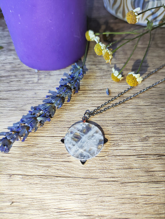 Colgante Nudo de Brujas con Cuarzo Cristal y Cadena de Acero – Claridad y Protección Energética