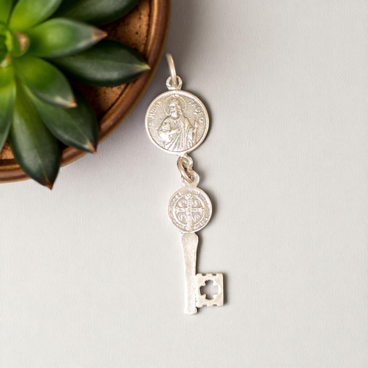 Colgante Protección Llave de San Benito y San Judas en Plata de Ley 925 Envejecida