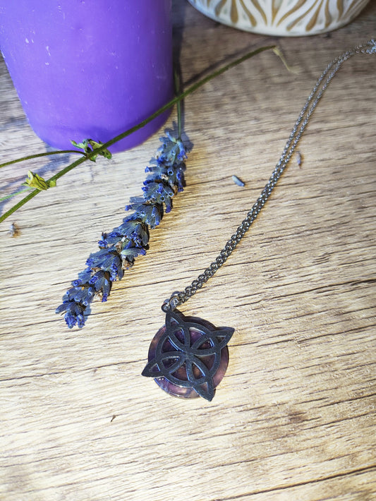 Colgante Nudo de Brujas con Amatista y Cadena de Acero – Protección y Sabiduría