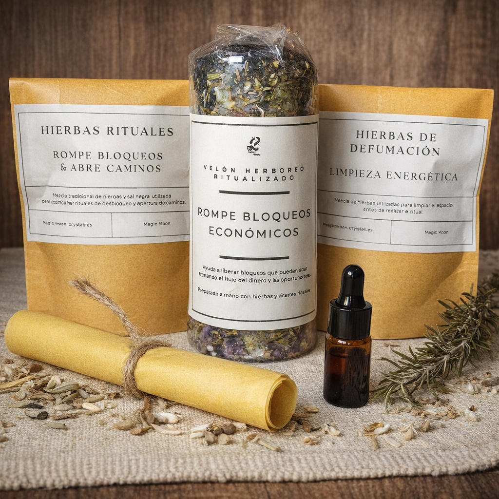 Este pack contiene un ritual diseñado específicamente para romper bloqueos que estén frenando el flujo del dinero y las oportunidades en tu vida.