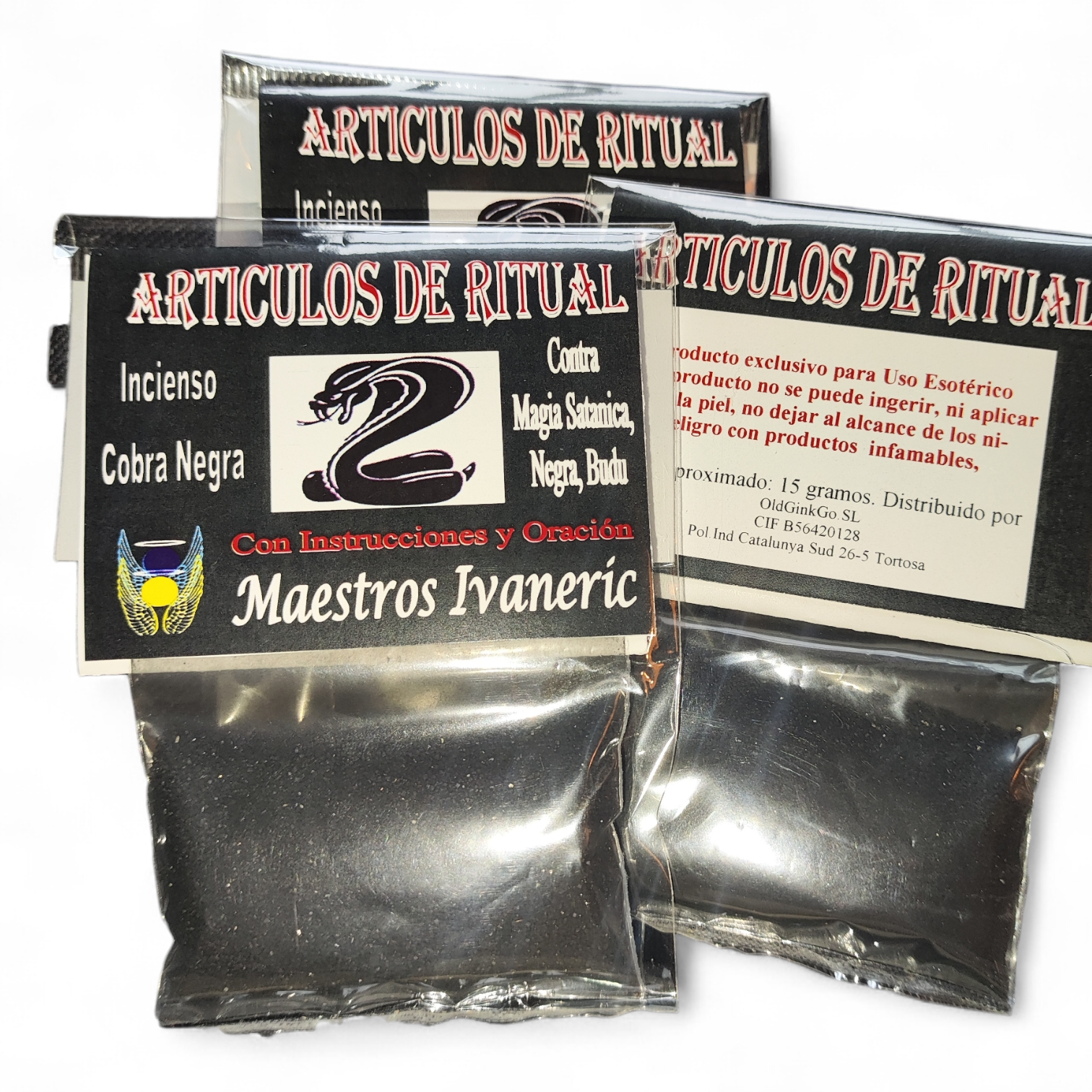 El Incienso Cobra Negra es un incienso ritual en polvo especialmente formulado para trabajos de protección fuerte, defensa energética y neutralización de energías negativas, ataques psíquicos, envidias, magia negra o trabajos enviados.