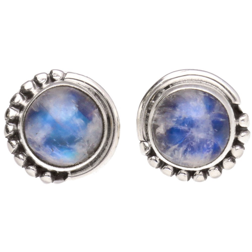 Su tamaño discreto los hace perfectos para llevar a diario, mientras que el brillo suave y azulado característico de la piedra luna les da un aire mágico y sutil. Son pendientes cómodos, elegantes y con un profundo significado energético.