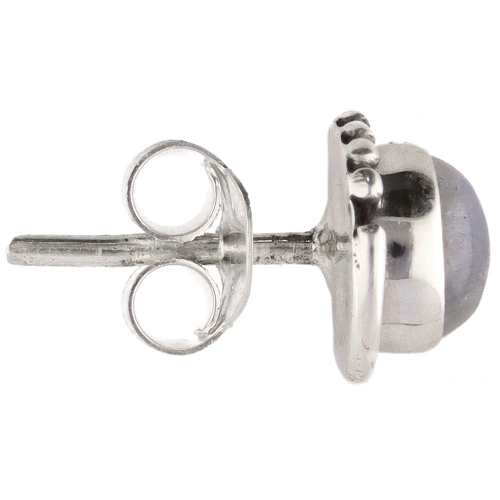 Los Pendientes de Piedra Luna en Plata de Ley son una joya delicada y luminosa, elaborados con piedra luna natural en cabujón redondo y engarzados en un elegante bisel de plata de ley 925 con detalles decorativos.
